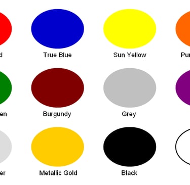 Above are the colors I try to keep in stock, but all colors are subject to local availability. I can usually purchase most of these colors locally, but not always. (Gold & silver availability is sketchy) For metallic silver and metallic gold, add $5.00.