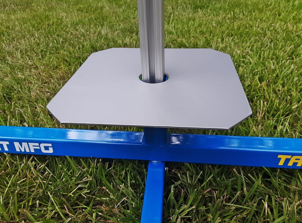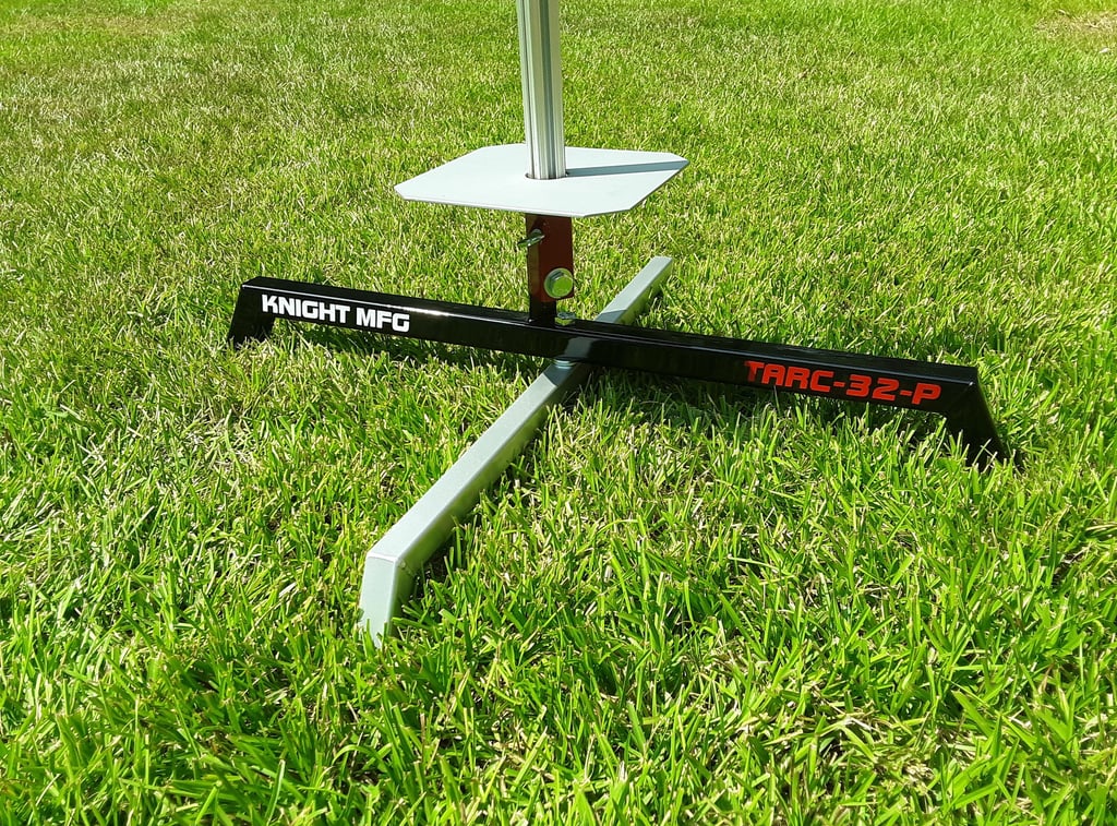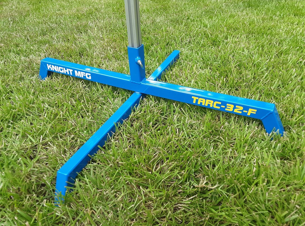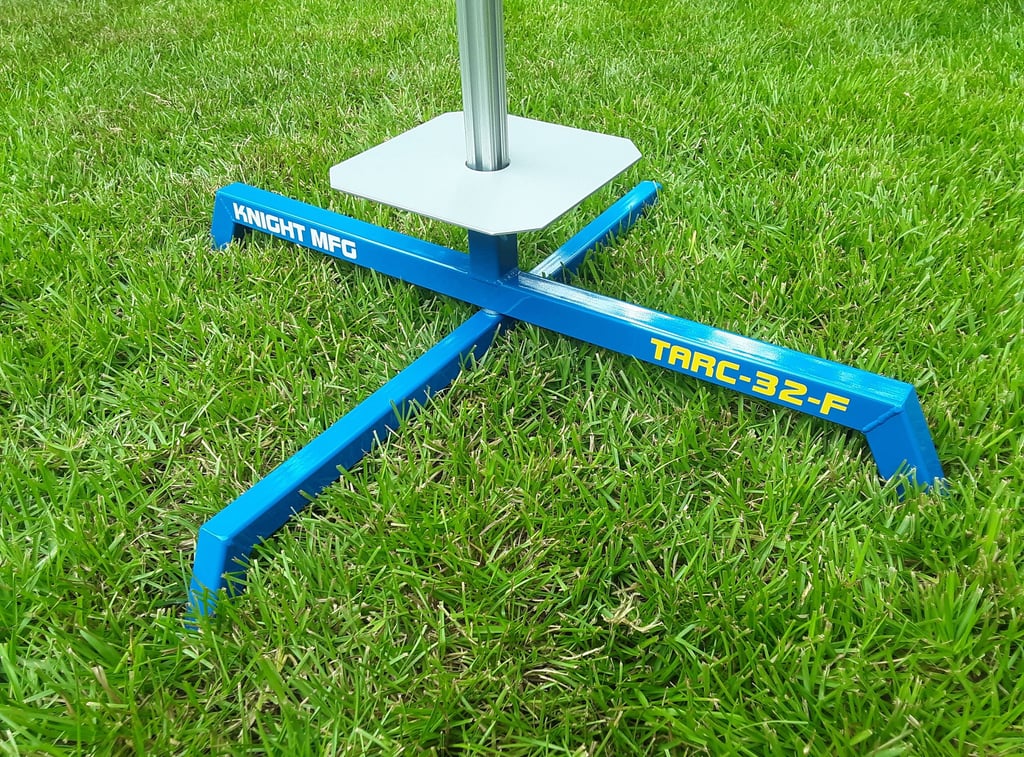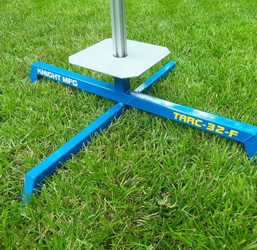 The new TARC-32-F model is a basic folding model with a 32 X 28.5 inch footprint. These pads are sized just right for TARC sized rockets and are very simple to use. Just drop a 1010 rail into the fixed rail holder, slide the blast deflector down over the rail and you're ready to load a rocket. 8 X 8 blast deflector is included. $229.99 shipped.
