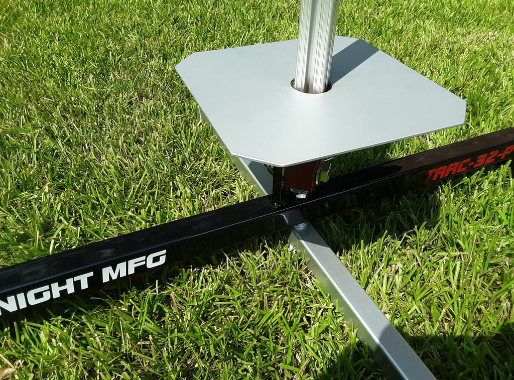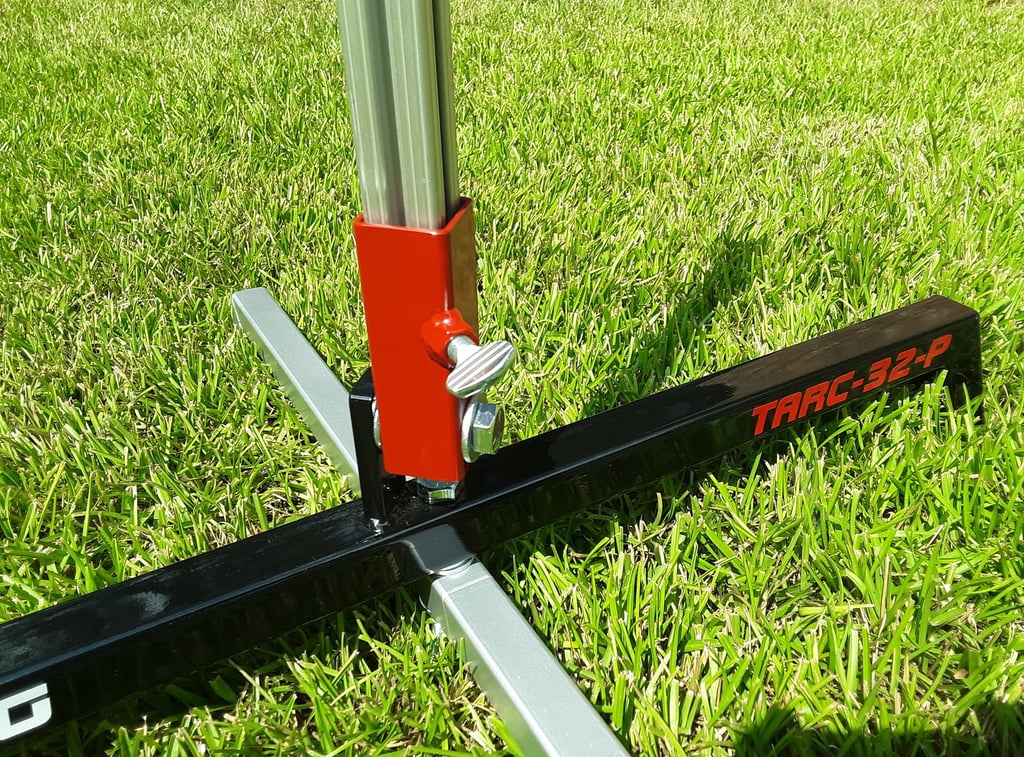 The TARC-32-F model has a fixed rail holder that is welded to the center of the top arm of the base. A 3/8 thumb screw holds the rail securely in the rail holder.