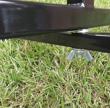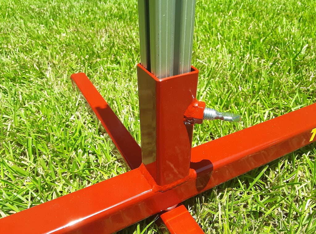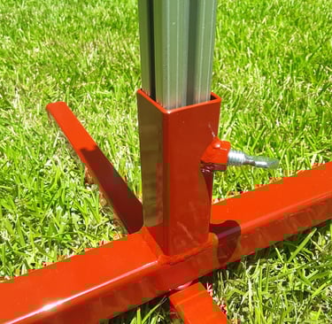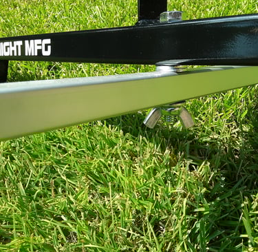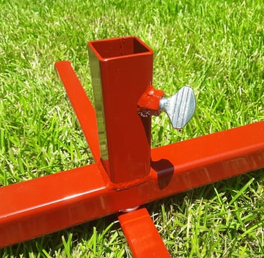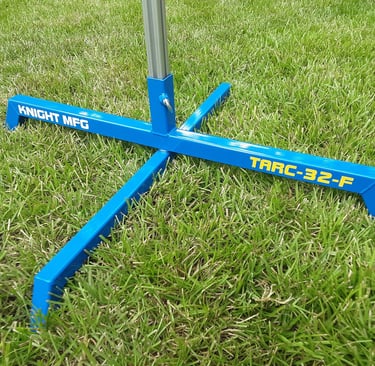 The TARC-32-F model has a fixed rail holder that is welded to the center of the top arm of the base. Just drop a 1010 rail into the fixed rail holder, slide the blast deflector down over the rail and you're ready to load a rocket. The only way the rocket can go is up, an added safety feature of this model. The base is extra sturdy with the upper arm made from 1-1/4" square steel tubing and the lower stabilizer arm made from 1" square steel tubing, both in 14 gauge. So this is a very sturdy and stable base to launch your rockets from.