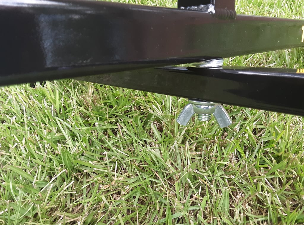 Wing nut under bottom arm tightens the arms in place.